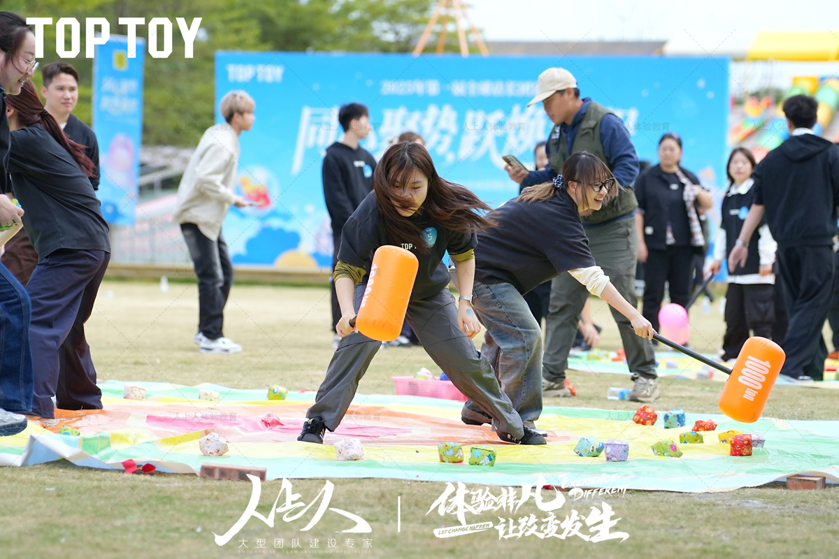 上午的比赛分为上下半场,跳大绳、沙包大作战、彩虹攻防战...这场名为"同心积分赛"的十项全能挑战,让TOPTOY全球店长彻底释放天性!在明确规则与充分热身后,各小组迅速进入状态。首轮30分钟限时挑战中,队员们分工明确、配合默契,展现出高效的执行力与灵活的应变能力。