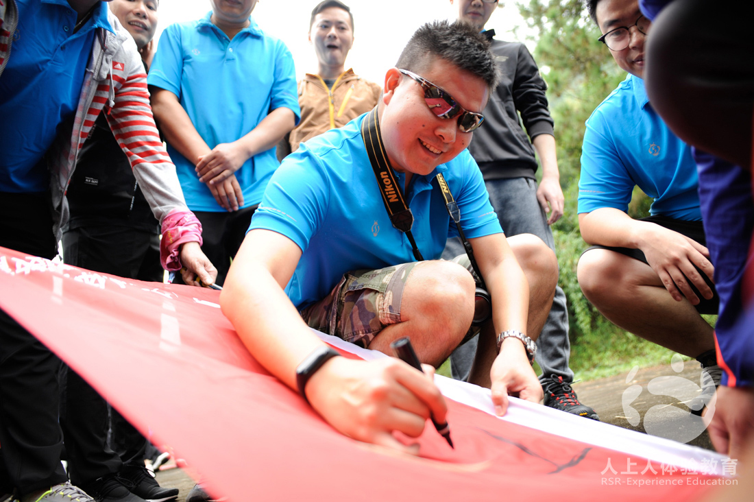 再组建团队,把队名和口号都写在旗子上,挥动旗杆,喊响口号,激励团队。